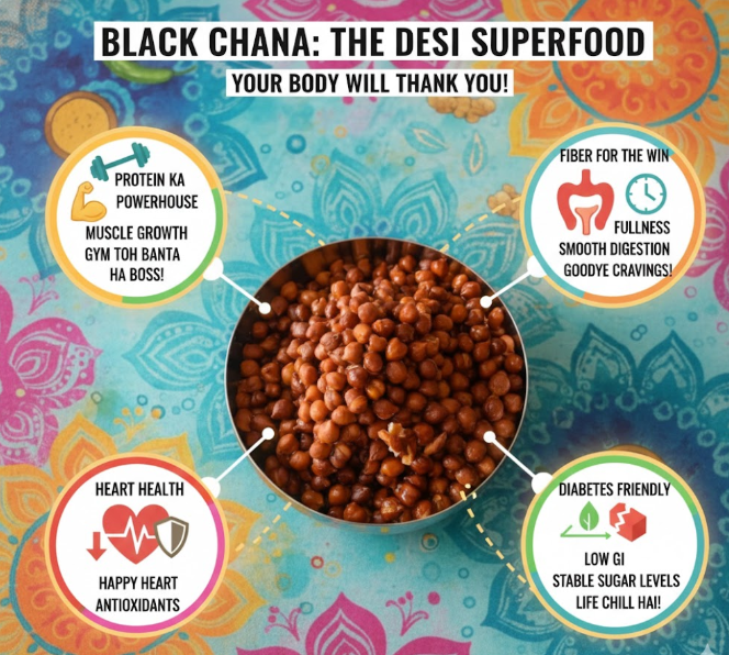 Aaj kal ki lifestyle mein hum sab “Fitness Enthusiasts” banna chahte hain, but let’s face it—karela juice is not the vibe. Enter: Black Chana. It’s crunchy, it’s earthy, and it’s packed with more benefits than your favorite multivitamin.
