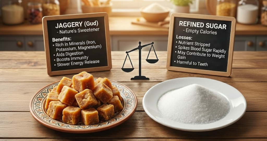 | Feature | Refined Sugar | Jaggery (Gud) |